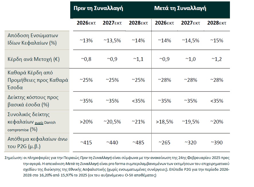 Η στοχοθεσία της Πειραιώς για την περίοδο έως το 2028, όπως ανακοινώθηκε νωρίτερα φέτος στην αγορά, αναβαθμίζεται, λαμβάνοντας υπόψιν την αναμενόμενη επίδραση της Συναλλαγής, ως ακολούθως: