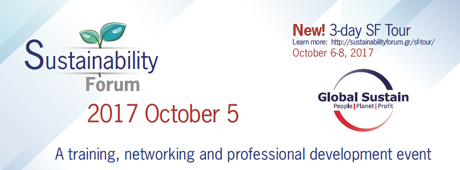 Τρεις εβδομάδες απομένουν για την πραγματοποίηση του 6ου κατά σειρά Sustainability Forum 2017, a training, networking and professional development event. Το Forum το οποίο διοργανώνει η Global Sustain, θα πραγματοποιηθεί στις 5 Οκτωβρίου, στις εγκαταστάσεις του Κέντρου Βιώσιμης Επιχειρηματικότητας «Εξέλιξη».