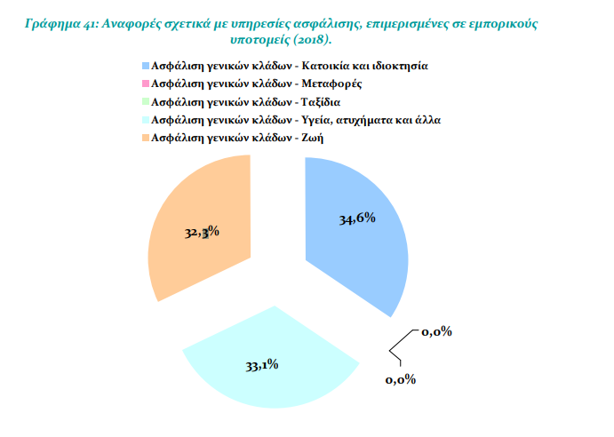 Ειδικότερα το 2018 οι αναφορές για χρηματοπιστωτικές υπηρεσίες ήταν το 14,9% επί του συνόλου και ανήλθαν σε 1.495. Από αυτές οι 405 αφορούσαν ασφαλιστήρια συμβόλαια και πιο συγκεκριμένα: