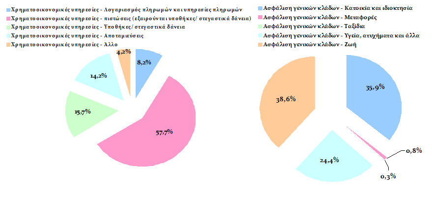 Στον ασφαλιστικό κλάδο οι περισσότερες υποθέσεις αφορούσαν ασφάλιση γενικών κλάδων-ζωής, ασφάλιση κατοικίας και ασφάλιση υγείας