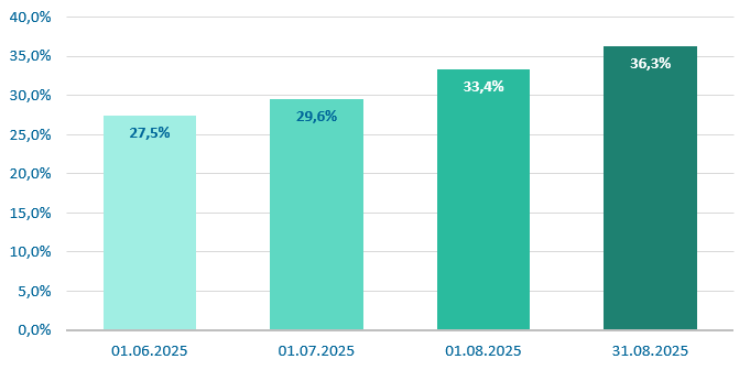 Μικρή αύξηση καταγράφεται στο στόλο των ασφαλισμένων οχημάτων για δασική πυρκαγιά και πλημμύρες, μέσα στην περίοδο Ιουνίου – Αυγούστου 2025. Ειδικότερα από το 27,5% του συνόλου των αυτοκινήτων που είχαν ασφάλιση για φυσικές καταστροφές την 1η Ιουνίου, όταν ξεκίνησε να ισχύει η υποχρεωτικότητα, στο τέλος του τριμήνου συνολικά στην χώρα έχουμε ασφαλισμένο μόλις το 36,3%.