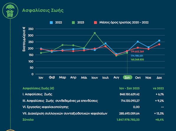 Με θετικό πρόσημο κινείται η ασφαλιστική παραγωγή στο 2023, καθώς σύμφωνα με τα τελευταία στοιχεία της ΕΑΕΕ τα προγράμματα στον κλάδο ζωής έχουν αυξημένη κατά 8,4% παραγωγή και στις γενικές ασφαλίσεις κατά 11%.