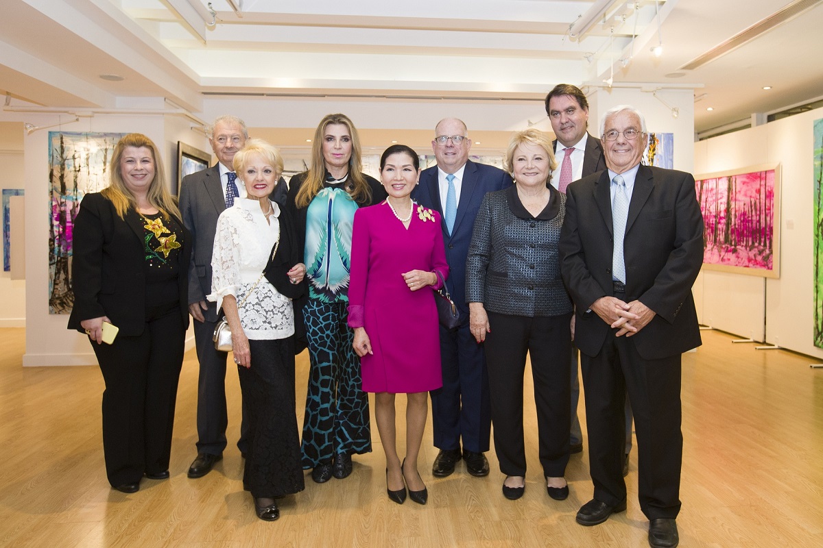 Το παρών στην εκδήλωση έδωσαν – μεταξύ άλλων – ο κυβερνήτης του Maryland και σύζυγος της κ. Hogan, κ. Larry Hogan, η Πρόεδρος του National Museum of Women in the Arts της Washington DC, κ. Carol Mathews Laskaris, καθώς και μέλη του Διοικητικού Συμβουλίου του Μουσείου. Ακόμη, τα εγκαίνια τίμησαν με την παρουσία τους ο γ.γ. Πολιτισμού, κ. Γιώργος Διδασκάλου και ο πρέσβης της Νότιας Κορέας, κ. Soosuk Lim, μετά της συζύγου του.