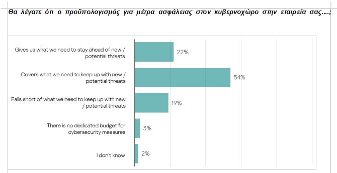 Όσον αφορά τα οικονομικά τους, το 22% των εταιρειών στην Ευρώπη παραδέχεται ότι δεν διαθέτει τον προϋπολογισμό για επαρκή μέτρα ασφάλειας στον κυβερνοχώρο.