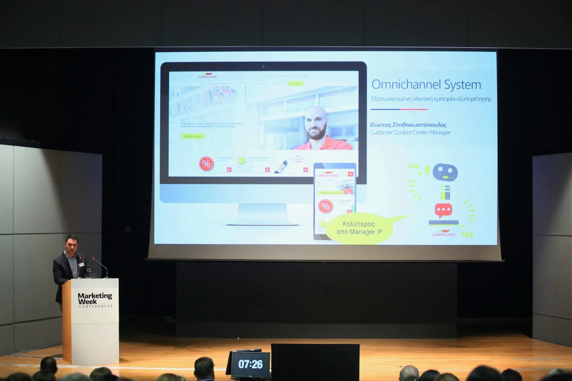 Ο Κώστας Σταθοκωστόπουλος, Customer Contact Center Manager Carglass®, παρουσίασε το Omnichannel σύστημα που έχει αναπτύξει η εταιρεία στο πλαίσιο τόσο της άρτιας εξυπηρέτησης πελατών όσο και της ανταπόκρισή της στις συνεχώς αυξανόμενες απαιτήσεις του σύγχρονου ψηφιακού κοινού. Η ανάπτυξη πολλαπλών καναλιών επικοινωνίας, από το παραδοσιακό τηλέφωνο έως το Chatbot του Facebook Messenger, αλλά και η άρρηκτη διασύνδεση μεταξύ τους, έχουν ως στόχο την διευκόλυνση του πελάτη, ο οποίος μπορεί να έρθει σε επαφή με την εταιρία με οποιοδήποτε τρόπο επιλέξει, από οποιαδήποτε συσκευή χωρίς να χρειασθεί να επαναλάβει τον εαυτό του.
