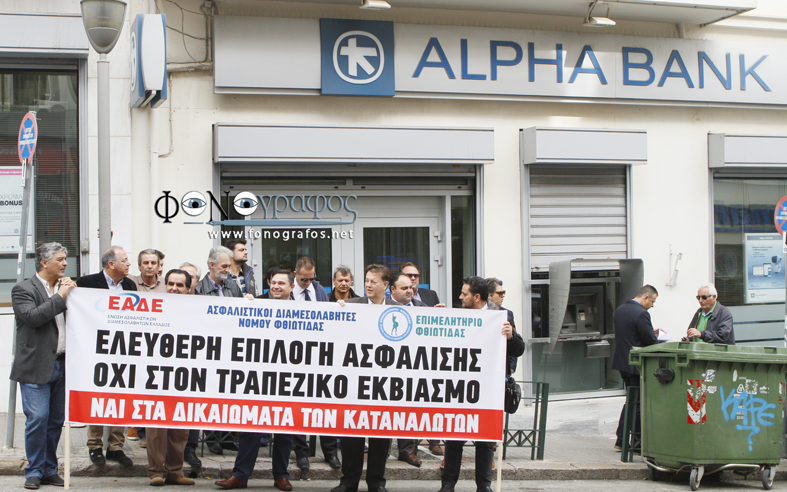Μαζική ήταν η κινητοποίηση Ασφαλιστικών Διαμεσολαβητών σε όλη την Ελλάδα καθώς ομάδες Ασφαλιστών σε περισσότερες από 18 πόλεις διαδήλωσαν συμβολικά έξω από υποκαταστήματα Τραπεζών διαμαρτυρόμενοι για τις αθέμιτες πρακτικές που χρησιμοποιούν όσον αφορά την Ασφαλιστική τους δραστηριότητα.