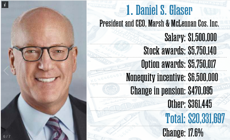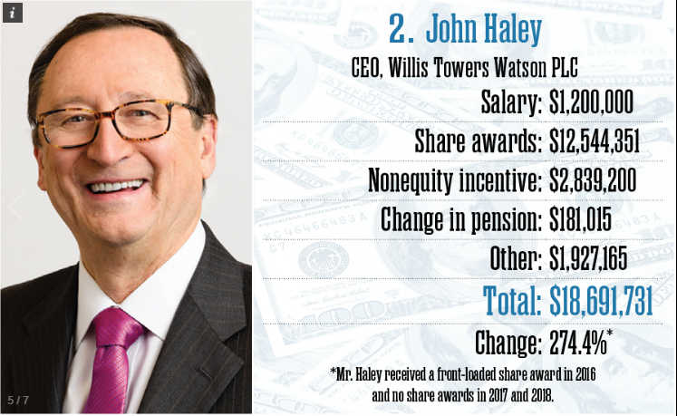 Όπως αναφέρεται στην πρώτη πεντάδα βρίσκονται άνθρωποι σε θέσεις κλειδιά στις Brown, Gallagher, Aon, Willis και Margs.