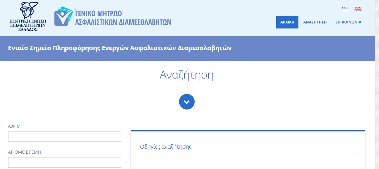 Μέσα από τη διεύθυνση οι ασφαλιστικοί διαμεσολαβητές μπορούν να εντοπίσουν και ηλεκτρονικά τον νέο Αριθμό Μητρώου τους.