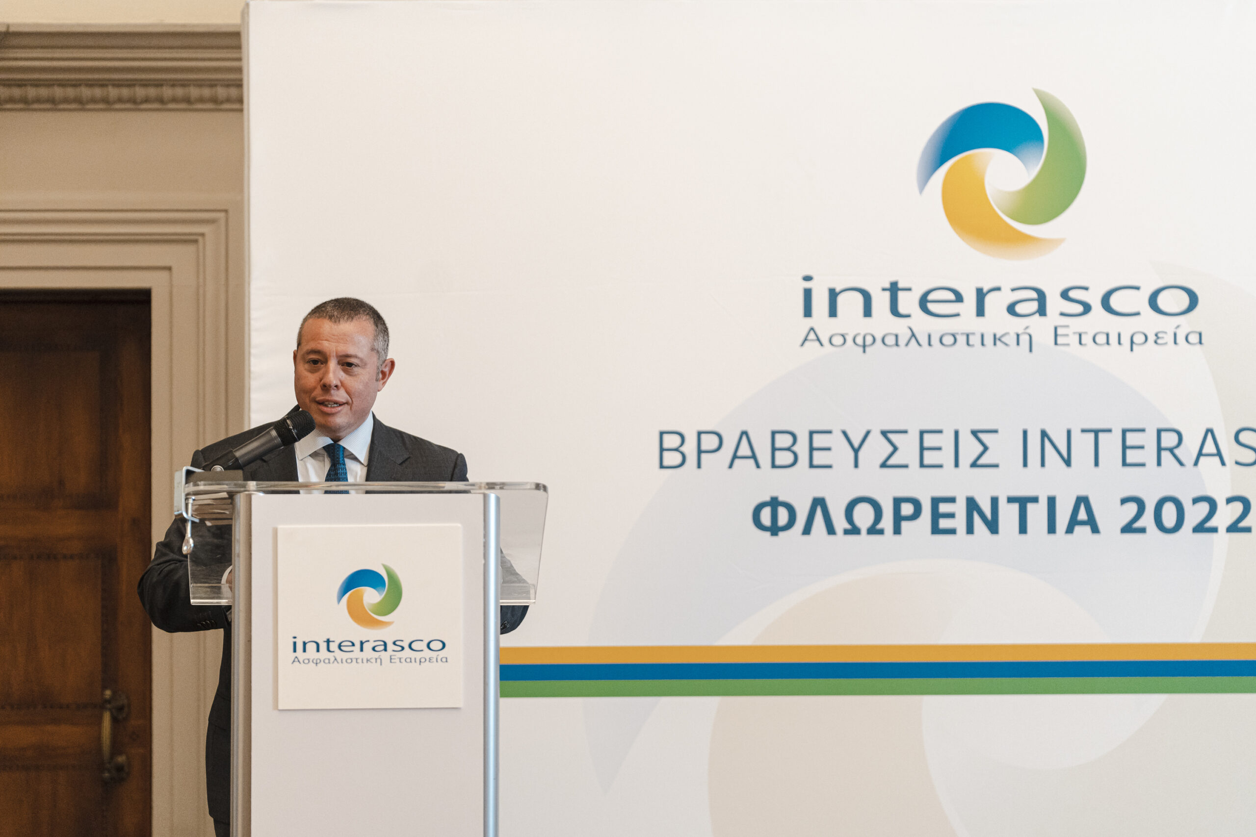 Ο Διευθύνων Σύμβουλος της INTERASCO Α.Ε.Γ.Α, κ. Κάρολος Σαϊας, στην εκδήλωση βραβεύσεων, αφού συνεχάρη και ευχαρίστησε όλους τους συνεργάτες για τη συμβολή και τον επαγγελματισμό τους, προχώρησε σε μια σύντομη ανασκόπηση της προηγούμενης χρονιάς. Αναφέρθηκε στα θετικά παραγωγικά αποτελέσματα της εταιρείας για το 2021, δηλαδή στην αύξηση ύψους 4,8% στα εγγεγραμμένα ασφάλιστρα, καθώς και στις ενέργειες για την επίτευξη των εταιρικών στόχων για τη φετινή χρονιά. Όπως ανέφερε, ήδη διαφαίνεται ότι κατά το πρώτο 9μηνο του 2022 η αύξηση της παραγωγής ανέρχεται στο 15,9%.