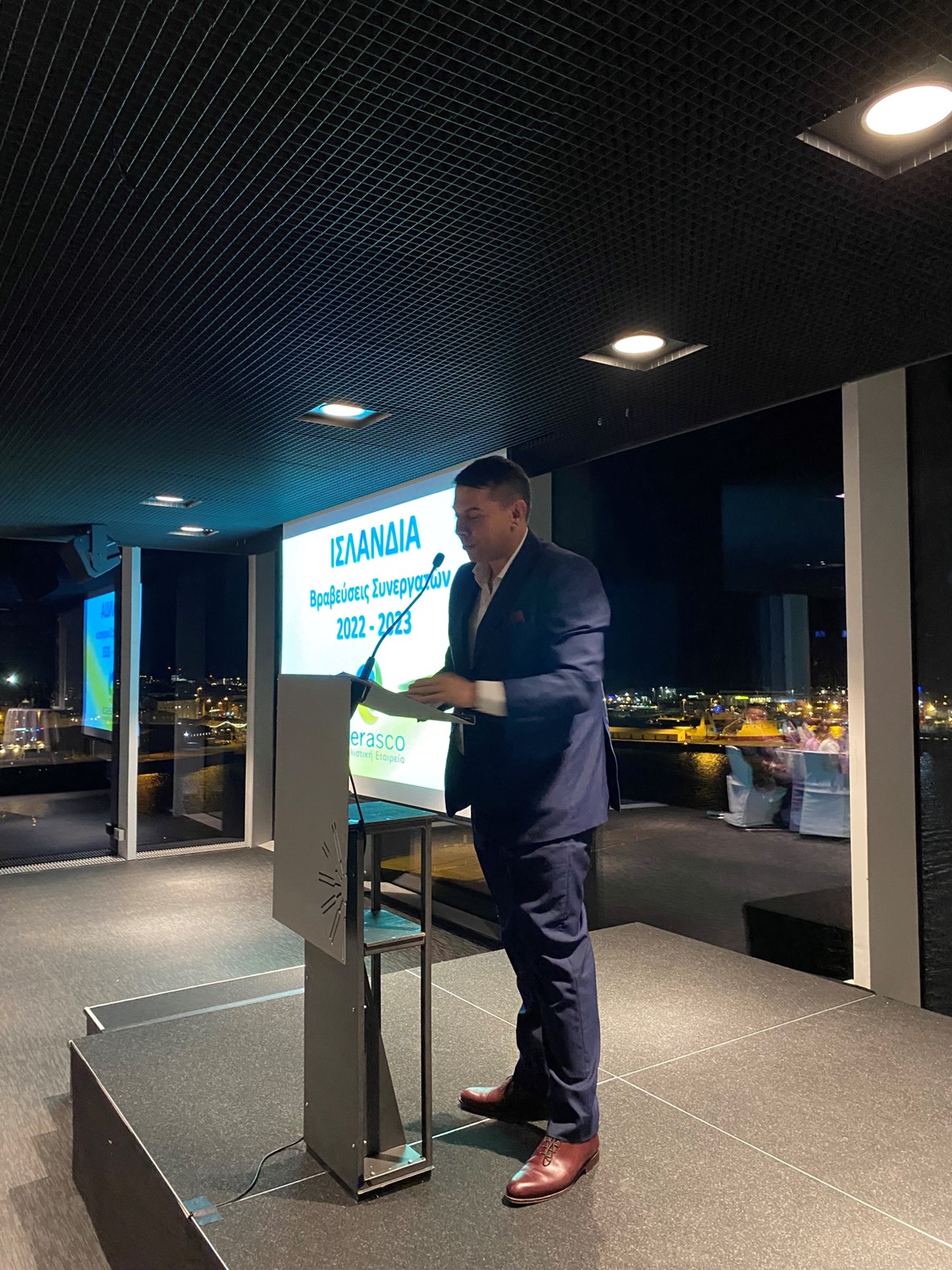 Tην τελευταία βραδιά, στην αίθουσα εκδηλώσεων του Συνεδριακού Κέντρου «HARPA» και κάτω από τη λάμψη του Βόρειου Σέλας, πραγματοποιήθηκαν οι βραβεύσεις των κορυφαίων συνεργατών της Interasco για το έτος 2022.