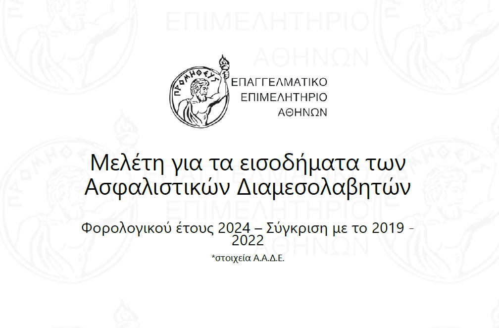 Σημαντικά συμπεράσματα προκύπτουν από την τρίτη κατά σειρά Μελέτη του Επαγγελματικού Επιμελητηρίου Αθηνών σχετικά με τον αριθμό των επαγγελματιών στον κλάδο της ασφαλιστικής διαμεσολάβησης, τις νομικές μορφές δραστηριοποίησής τους και τα εισοδήματά τους.