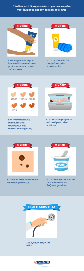 7 Μύθοι και 1 Πραγματικότητα για τον καρκίνο του δέρματος και την έκθεση στον ήλιο
