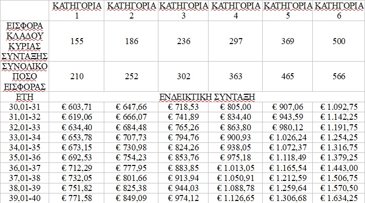 Σημειώνεται πως τα ποσά σύνταξης έχουν υπολογισθεί λαμβάνοντας υπόψη ότι έχουν καταβληθεί εισφορές για όλο το χρόνο ασφάλισης στην ίδια ασφαλιστική κατηγορία. Η κατάταξη σε ασφαλιστική κατηγορία είναι υποχρεωτική. Η επιλογή σας θα ισχύει δεσμευτικά για όλο το έτος 2020.