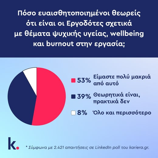 Το burnout και η ψυχική υγεία μεταξύ των βασικών ζητημάτων που απασχολούν τους εργαζόμενους και στην Ελλάδα δείχνει διαδικτυακή έρευνα που διεξήγαγε το kariera.gr μέσω LinkedIn.