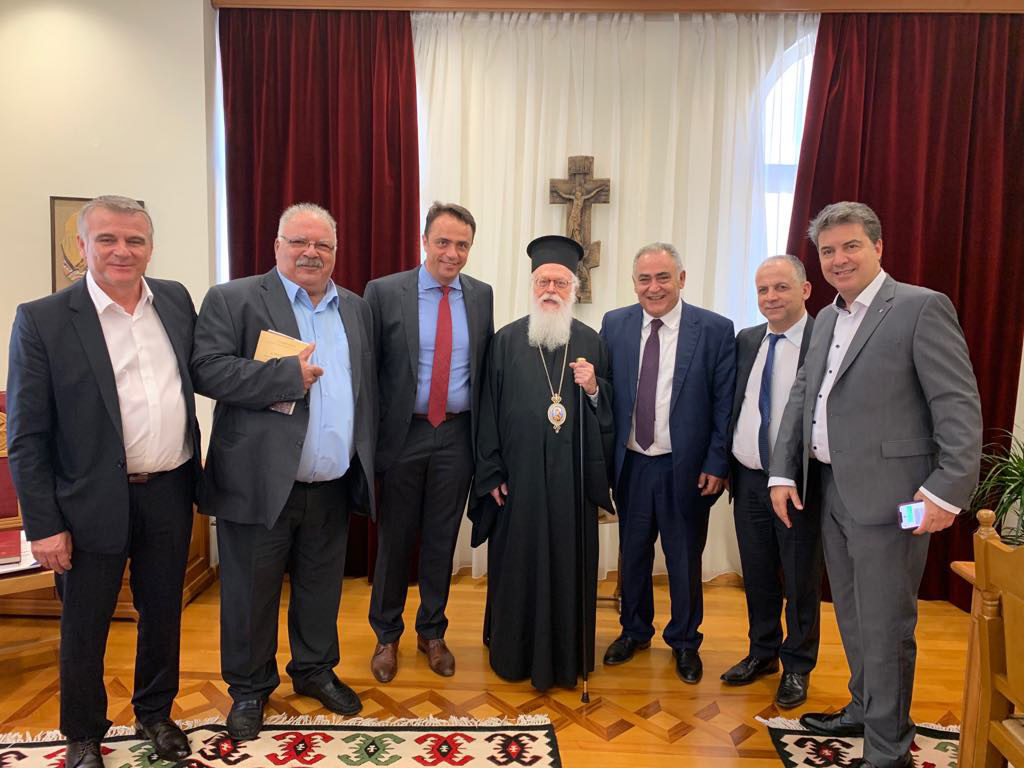 Ξεχωριστή στιγμή όμως για όλα τα μέλη της ελληνικής αποστολής, ήταν η συνάντηση με τον Αρχιεπίσκοπο Αλβανίας Αναστάσιο, ένα πρόσωπο που απολαμβάνει τον καθολικό σεβασμό στη γειτονική χώρα. Ο Αρχιεπίσκοπος αναφέρθηκε στο έργο της Εκκλησίας στην Αλβανία και στην στήριξη που προσφέρει στην κοινωνία, ενώ έδειξε ιδιαίτερο ενδιαφέρον για τις εξελίξεις στην Ελλάδα και για την προσπάθεια ανάκαμψης της ελληνικής οικονομίας.