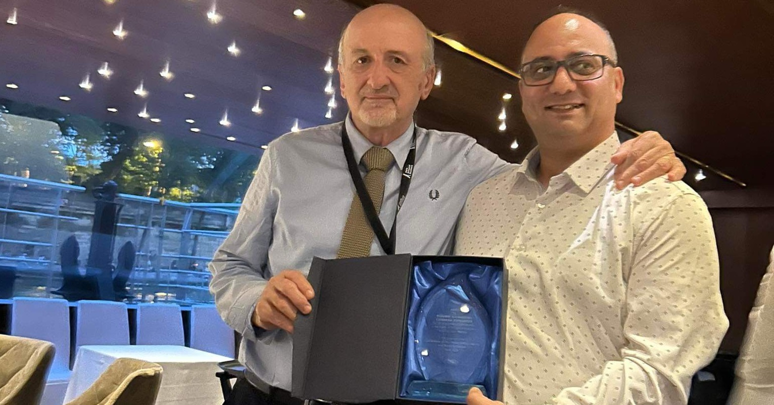 Στις δύο φωτογραφίες φαίνονται ο Τιμώμενος με το Διευθυντή Έρευνας Δρ. Samir Saadi και το βραβείο.