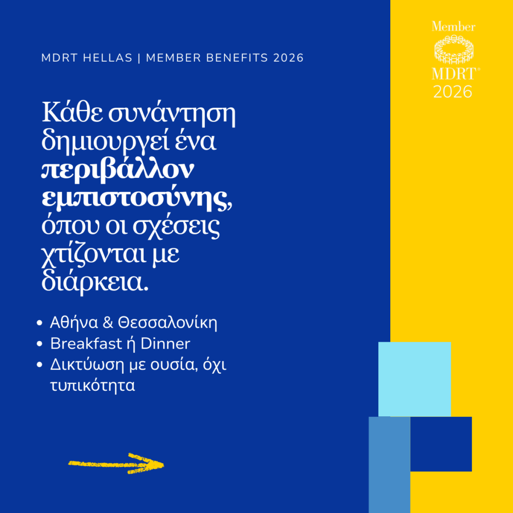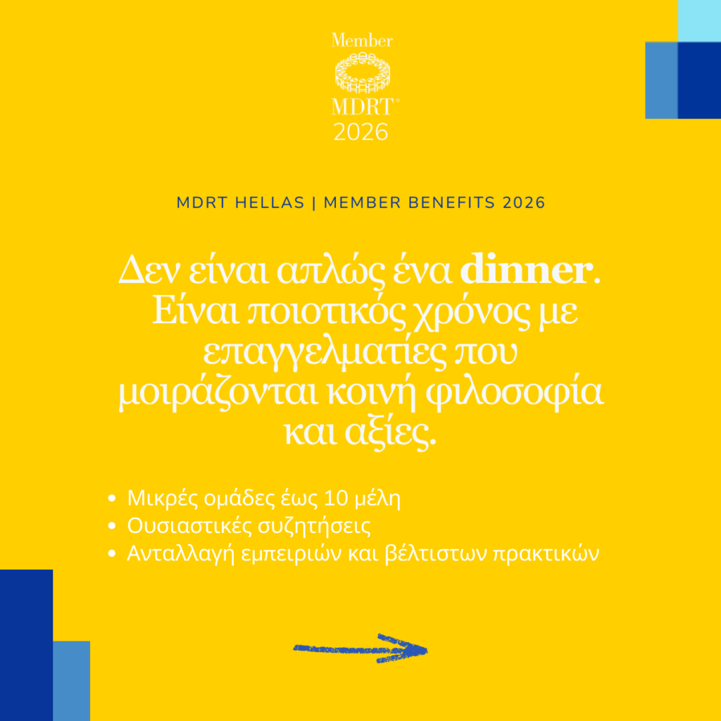 «Κάθε Power Table μας θυμίζει ότι η πραγματική εξέλιξη δεν έρχεται από τη θεωρία, αλλά από τη σύνδεση. Όταν μοιραζόμαστε εμπειρίες, μεγαλώνουμε όλοι μαζί. Και αυτό είναι το MDRT στην πράξη.»
