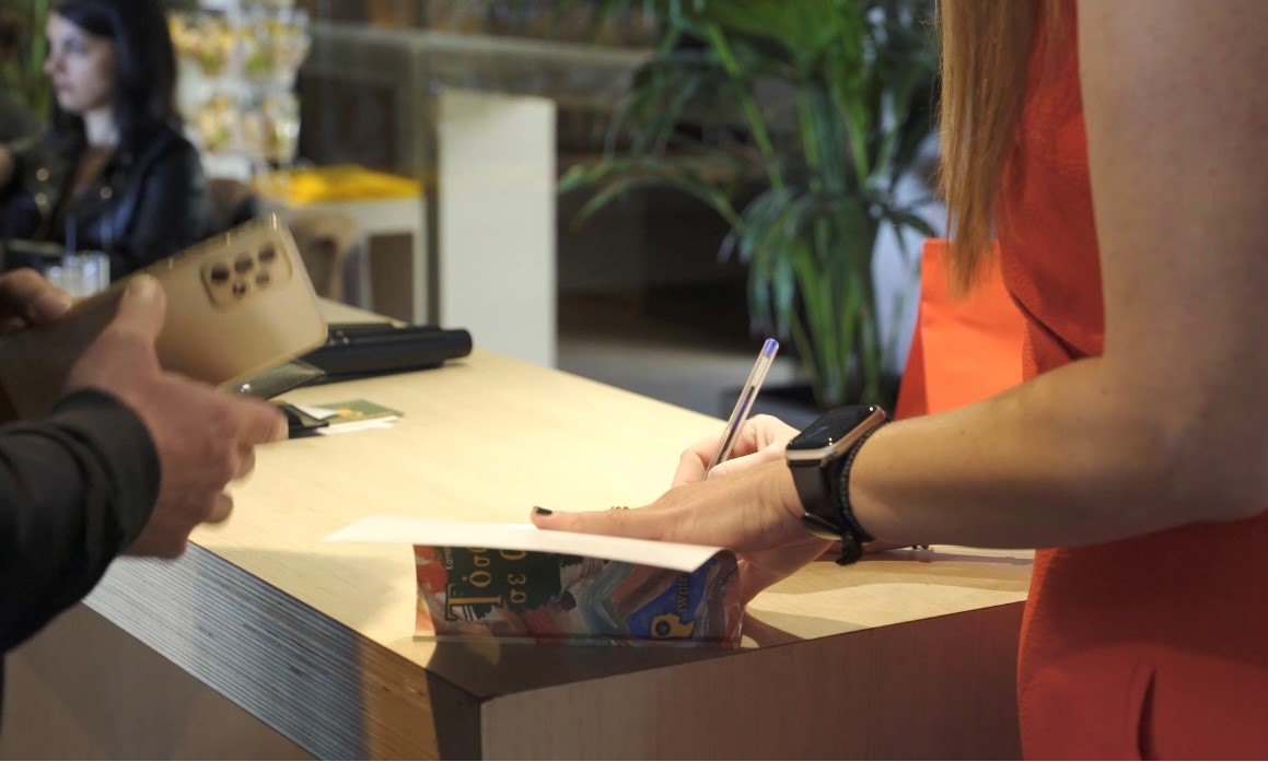 Περισσότεροι από 150 φίλοι του βιβλίου βρέθηκαν εκεί και συγκινήθηκαν, παρακολουθώντας τα εντυπωσιακά αποτελέσματα της διαδραστικής ομιλίας της κ Αθηνά Αγγελούδα, DISK Trainer, που παρακινώντας τα παιδιά, μας αποκάλυψαν τους διαφορετικούς τρόπους που αντιλαμβάνονται την αγάπη. Τα παιδιά «διδάξανε» τους παρόντες ενήλικες τις 5 γλώσσες της αγάπης που όπως είπαν είναι η αγκαλιά, τα λόγια επιβεβαίωσης, ο ποιοτικός χρόνος, οι πράξεις φροντίδας και χειρονομίες όπως κάποιο δώρο.