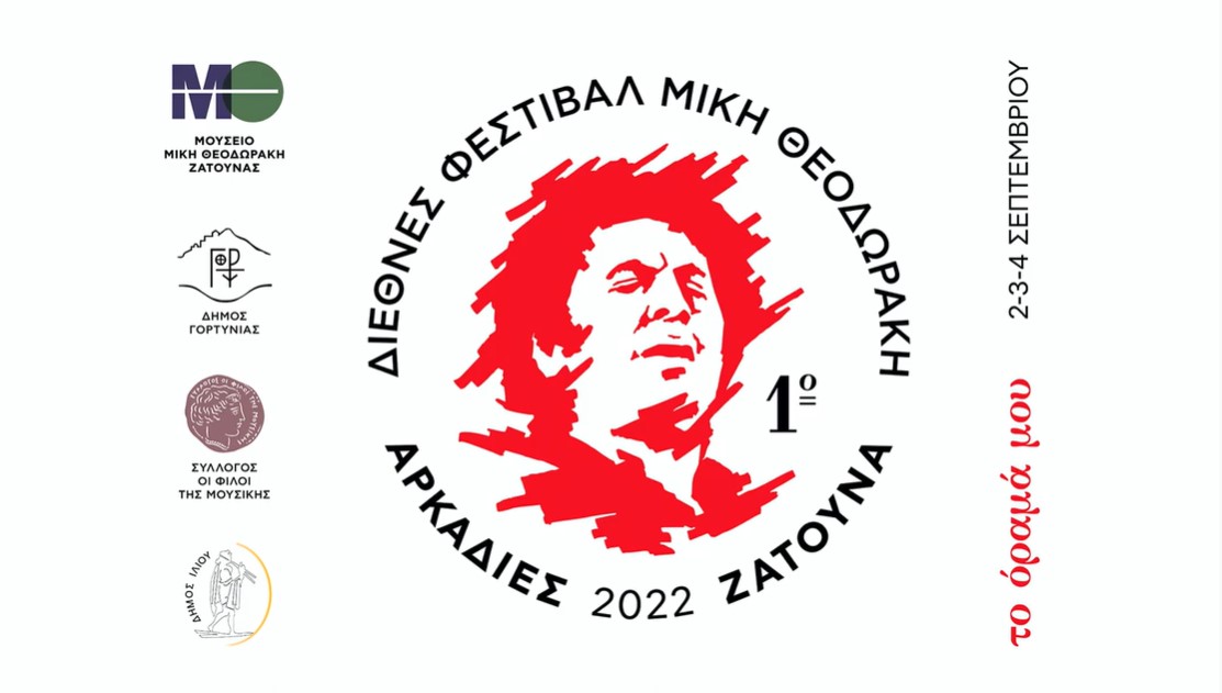 Είναι το Α’ Διεθνές Φεστιβάλ «Μίκης Θεοδωράκης – ΑΡΚΑΔΙΕΣ Ζάτουνα», όπως το οραματίσθηκε, όπως το ήθελε ο ίδιος, με συνδιοργανωτές το ΜΟΥΣΕΙΟ Μίκη Θεοδωράκη Ζάτουνας, τον Δήμο Γορτυνίας και τον Σύλλογο «Οι Φίλοι της Μουσικής». Οι εκδηλώσεις ξεκινούν την Παρασκευή 2 Σεπτεμβρίου 2022, στις 7 μ.μ., από το σπίτι του Μίκη, στην Επιφανούς 1, στου Φιλοπάππου. Με πλήθος κόσμου, με πολλά δρώμενα και με 96 σημαίες, όσα και τα πολύτιμα, για τους Έλληνες, την Ελλάδα, όλο τον κόσμο, χρόνια του Μίκη, που θα κρατούν 96 «σημαιοφόροι», σε μια διαδρομή που θα περάσει από την Πνύκα και θα καταλήξει, στο Ηρώδειο. Εκεί θα συναντηθούν με δύο ζωντανά κύτταρα της τέχνης και του πολιτισμού, με την Λαϊκή Ορχήστρα Μίκης Θεοδωράκης και με καλλιτέχνες από το Σπίτι του Ηθοποιού.