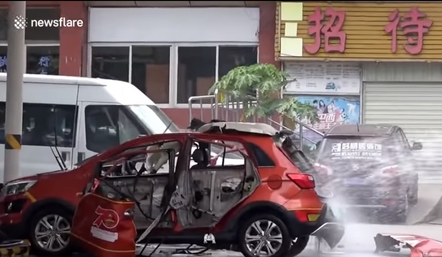Το περιστατικό καταγράφηκε τον Αύγουστο στην Κίνα και βάσει των πληροφοριών πρόκειται για μοντέλο της κινεζικής BAIC, το οποίο μάλλον ήταν επαναφορτιζόμενο υβριδικό και όχι αμιγώς ηλεκτρικό.