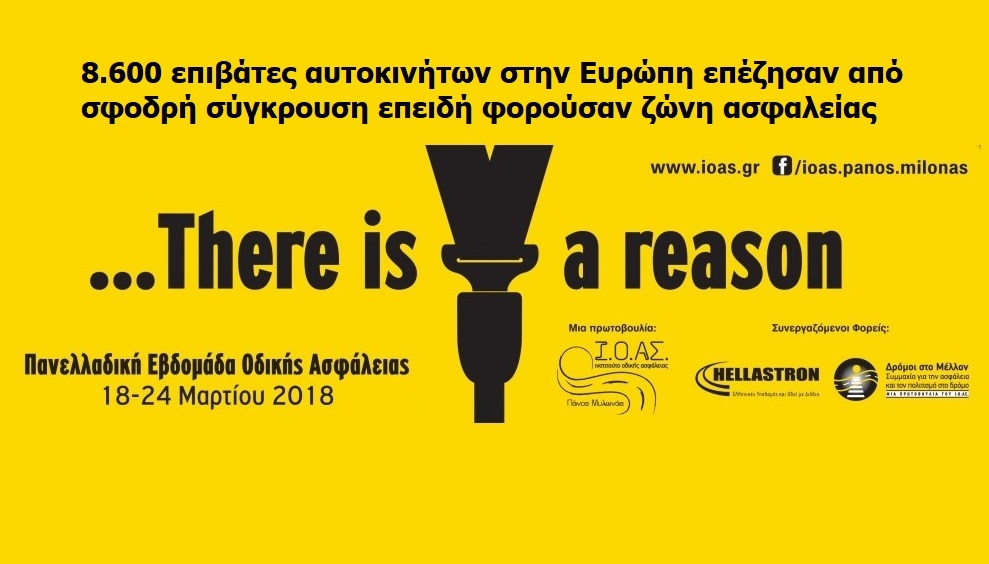 - 8.600 επιβάτες αυτοκινήτων στην Ευρώπη, κατά τη διάρκεια ενός χρόνου, επέζησαν από σφοδρή σύγκρουση επειδή φορούσαν ζώνη ασφαλείας.