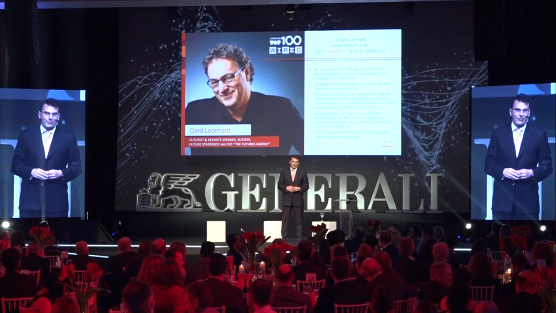 Για αυτά και άλλα καίρια ζητήματα μίλησε με σύγχρονα case studies και παραδείγματα μίλησε ο Gerd Leonhard στο Annual Sales Event της Generali Hellas για το 2019, με θέμα «Technology vs. Humanity».