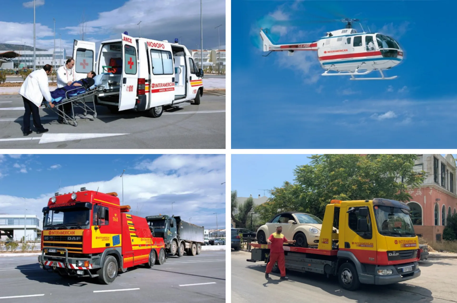Η INTERAMERICAN Βοήθειας διαθέτει ένα μεγάλο στόλο οχημάτων για την εξυπηρέτηση, σε συνδυασμό με σύγχρονη οργάνωση συντονισμού και με χρήση εξελιγμένων εφαρμογών της ψηφιακής τεχνολογίας. Υπενθυμίζεται ότι η INTERAMERICAN, μέσω της συνεργασίας της με ξένες εταιρείες Assistance, εξυπηρετεί επί σειρά ετών και τους δικούς της πελάτες, όταν ταξιδεύουν στο εξωτερικό.
