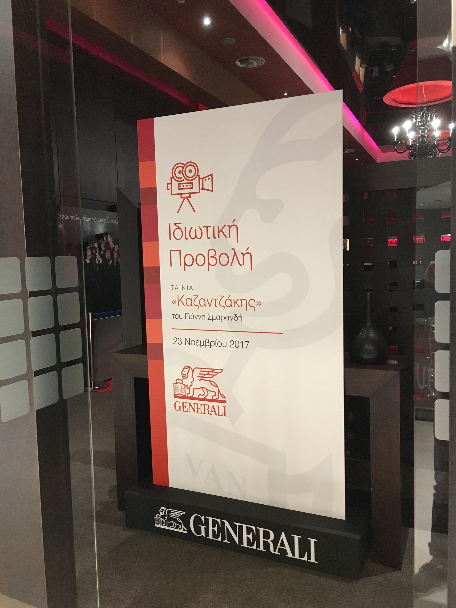 Μια κινηματογραφική βραδιά – έκπληξη επιφύλαξε η Generali στους συνεργάτες της. Περισσότεροι από 60 καλεσμένοι ανταποκρίθηκαν με ικανοποίηση στην πρόσκληση της εταιρίας και συγκεντρώθηκαν την Πέμπτη 23 Νοεμβρίου στις κινηματογραφικές αίθουσες Village Gold, προκειμένου να παρακολουθήσουν, σε αποκλειστική προβολή την ταινία «Καζαντζάκης», του Νίκου Σμαραγδή.