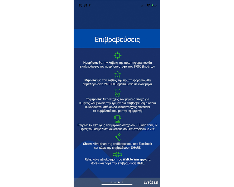• Κοινοποίηση δραστηριότητας στα social media Και όταν πετύχετε κάποιον από τους στόχους σας, έρχεται η επιβράβευση!