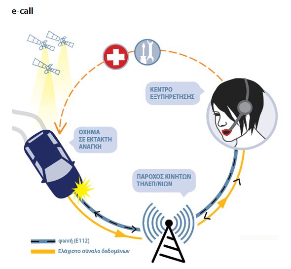 Περισσότερες από 2.500 ζωές που χάνονται σε τροχαία κάθε χρόνο στην ΕΕ υπολογίζεται ότι θα σώσει η υποχρεωτική εφαρμογή του συστήματος e-call σε όλα τα νέα οχήματα που θα κυκλοφορήσουν μετά από τις 31 Μαρτίου του 2018.