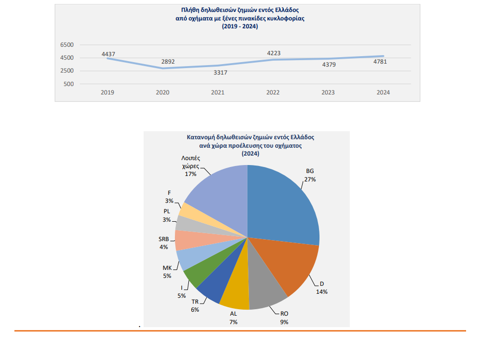Τα ατυχήματα από οχήματα με Βουλγαρικές πινακίδες κυκλοφορίας συνέχισαν να αυξάνονται το 2024 και έφτασαν στα 1282 από 1165 το 2023 (το 27% του συνόλου των ατυχημάτων).