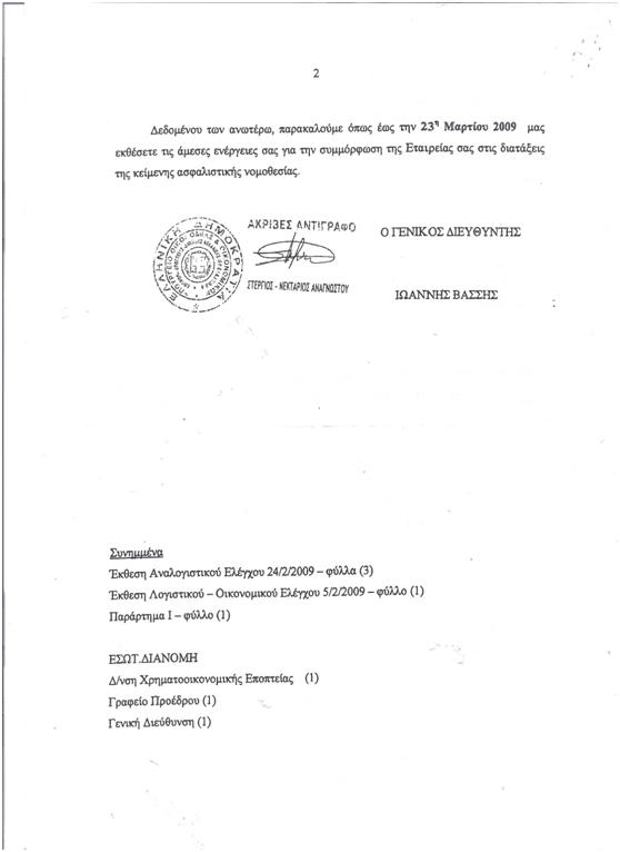« Και βεβαίως οι ισολογισμοί μας ενεκρίθησαν και ευρέθησαν σε απόλυτη νομιμότητα και από όλες τις εποπτικές αρχές και το Υπουργείο Ανάπτυξης(βλ. τα με ημερομηνία 19/12/2007 και αριθ.. πρωτοκ.Κ-3-12003 και Κ3/6767 έγγραφα του Υπουργείο Ανάπτυξης προς την εταιρεία μας και την εταιρεία ΑΣΠΙΣ ΠΡΟΝΟΙΑ ΑΕΑΖ προσαγόμενα με επίκληση ως σχετικό 6 &7»