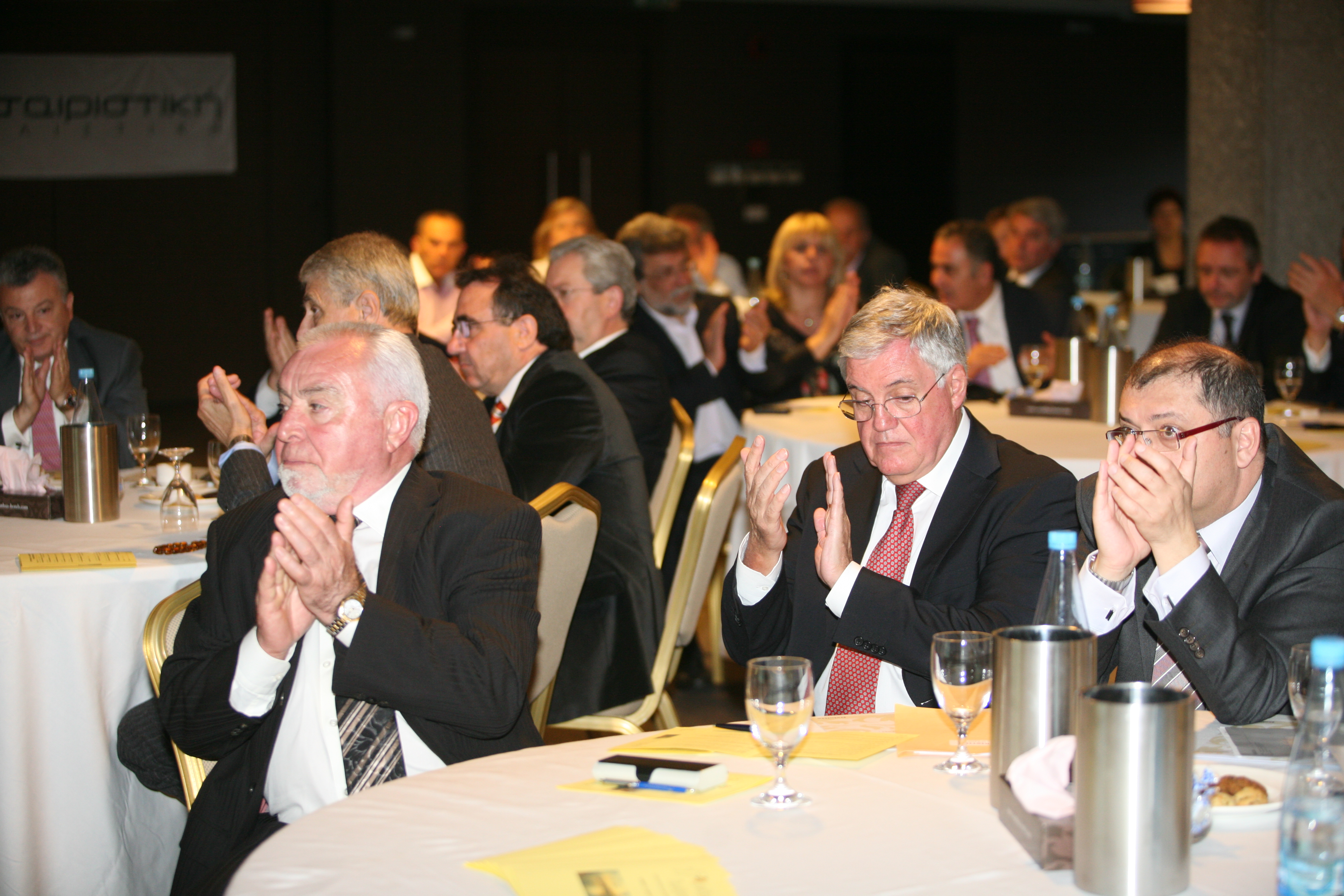 Ιδιαίτερη αίσθηση έκαναν στους συνέδρους, οι ομιλίες των εκπροσώπων των διεθνών μετόχων της Συνεταιριστικής Ασφαλιστικής και συγκεκριμένα των κ.κ. Roger Iseli, Αντιπροέδρου της Συνεταιριστικής ΑΕΕΓΑ και Εκπρόσωποι του Ομίλου MACIF και Enrico San Pietro Αντιπροέδρου της Συνεταιριστικής ΑΕΕΓΑ και Εκπρόσωπου του Ομίλου UNIPOL 9 (φωτό). Και οι δύο ομιλητές αναφέρθηκαν στην κατάσταση που επικρατεί στην ευρωπαϊκή ασφαλιστική αγορά και στο ρόλο των συνεταιριστικών ασφαλιστικών εταιρειών. Συνεχάρησαν τη Γενική Διεύθυνση για τα θετικά αποτελέσματα του έτους και διαβεβαίωσαν όλους τους παρευρισκόμενους ότι θα συνεχίσουν να στηρίζουν την εταιρεία προκειμένου να παραμείνει υγιής και ανταγωνιστική.