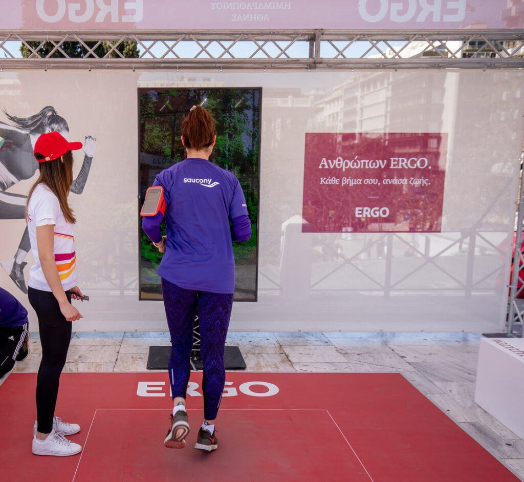 Συγκεκριμένα, κάθε επισκέπτης του περιπτέρου έτρεχε σε ένα ειδικά διαμορφωμένο δάπεδο με φυσικά τοπία σε οθόνη που έδιναν στον επισκέπτη την εντύπωση ότι ήταν στη φύση. Το σύνολο των «βημάτων» που συγκεντρώθηκαν από τις εκατοντάδες συμμετοχές των επισκεπτών του περιπτέρου της ERGO ανήλθε σε 22.000 βήματα, τα οποία θα μετατραπούν σε προσφορά, καθώς για κάθε 1.000 βήματα θα απομακρυνθούν 100 κομμάτια απορριμμάτων από τις Ελληνικές θάλασσες.