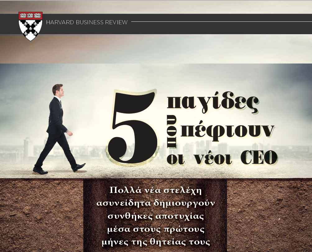 HBR: 5 παγίδες που πέφτουν οι νέοι CEO- Οι οργανισμοί επενδύουν πολλά στους διευθύνοντες συμβούλους που επιλέγουν, καθώς είναι οι άνθρωποι που αναλαμβάνουν να υλοποιήσουν το όραμα της εταιρείας και να κάνουν αλλαγές. Εντούτοις μέσα στους πρώτους 18 μήνες, υπάρχει πιθανότητα 50% ο νέος CEO να αποχωρήσει από τη θέση του. Αυτή η «αποτυχία» συνεπάγεται και τεράστιο κόστος, όχι μόνο σε επίπεδο εσωτερικής διοίκησης του οργανισμού αλλά και οικονομικά. Σύμφωνα με εκτιμήσεις το κόστος αυτό για τις εταιρείες ανέρχεται ακόμα και στο δεκαπλάσιο του μισθού του CEO