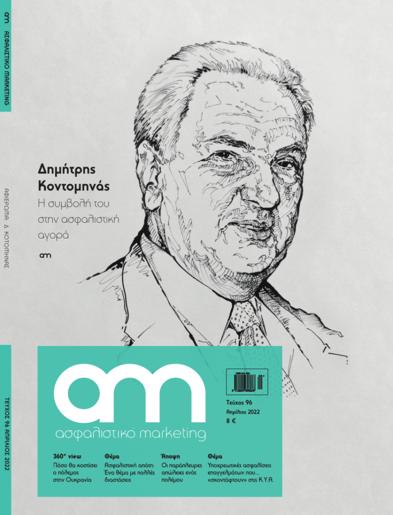 *Η φωτογραφία του εξωφύλλου του τεύχους Απριλίου 2022 του am είναι ένα γραμμικό πορτρέτο του Δημήτρη Κοντομηνά, που έχει φιλοτεχνήσει ο Γιάννης Ρούντος για τη δημιουργία του ταμπλό των συνιδρυτών της Interamerican, στην είσοδο του αμφιθεάτρου των κεντρικών γραφείων της εταιρείας. Τα αποκαλυπτήρια έγιναν τον Ιανουάριο του 2019, όταν η Interamerican, παρόντος του τέως προέδρου της ACHMEA, Willem van Duin, τίμησε τον αείμνηστο Δ. Κ. με μια ιδιαίτερη εκδήλωση, με την ευκαιρία της επετείου των 50 ετών από την ίδρυσή της. Ευχαριστούμε θερμά τον Γιάννη Ρούντο, έως πρόσφατα Διευθυντή Εταιρικών Υποθέσεων, Επικοινωνίας και Βιωσιμότητας-Υπευθυνότητας της Interamerican, για την παραχώρηση, καθώς και για το αρχειακό υλικό και τις πληροφορίες που δημοσιεύουμε»