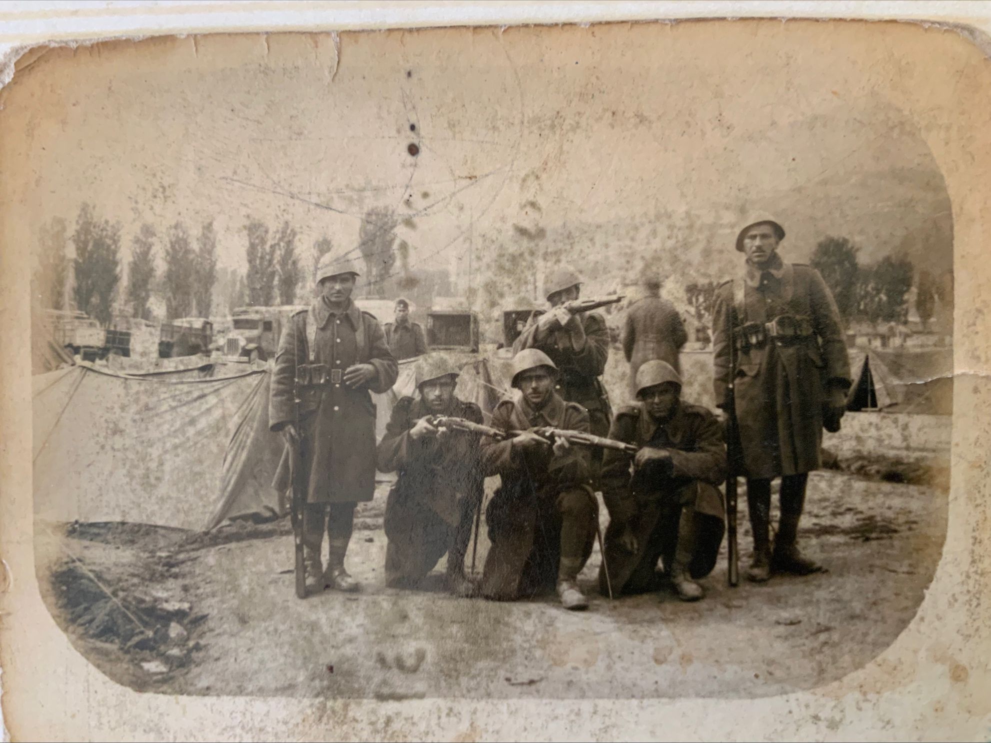 Μνήμης και για τα αμέτρητα θραύσματα των όλμων από το μέτωπο, που ψηλαφούσα στο κορμί του ως παράσημα υπερηφάνειας, πολύ αργότερα μικρό παιδάκι εγώ (ήλθα αργά), στα «εθνοσωτήρια» χρόνια της δικτατορίας. Μνήμης και για το θλιβερό τίμημα εκείνη την περίοδο – βλέπετε, η οικογένεια είχε δημοκρατική παράδοση. Στην πρώτη φωτογραφία, ο Ηλίας Ρούντος είναι ο μεσαίος επάνω, «επί σκοπόν», κάπου στο Αργυρόκαστρο, στο κυνήγι των Ιταλών.