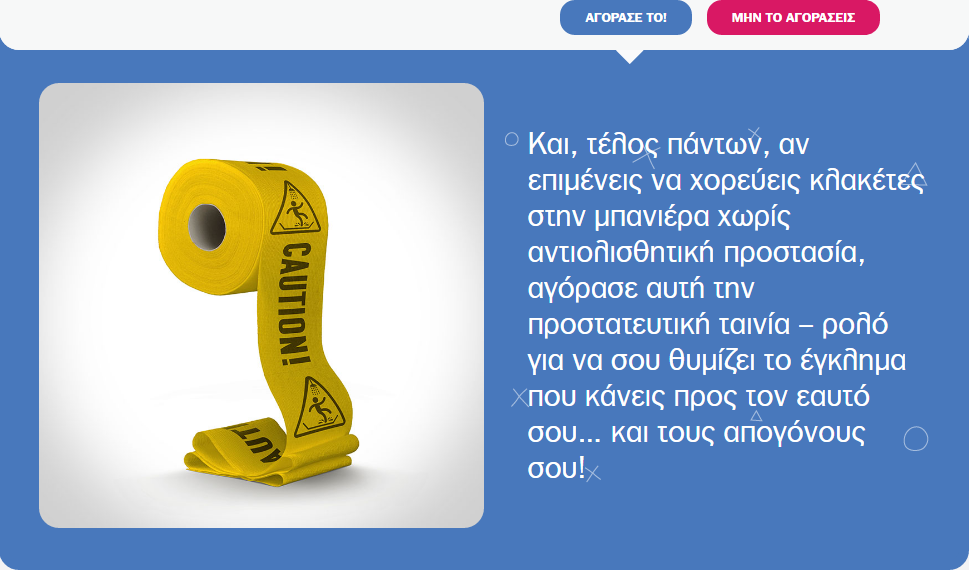 Η AXA Ασφαλιστική, θέτοντας διαχρονικά στο επίκεντρο των δραστηριοτήτων της την δημιουργία κουλτούρας υπευθυνότητας και την εκπαίδευση της κοινωνίας σε θέματα πρόληψης κινδύνων, συγκέντρωσε αυτές τις μικρές ή μεγάλες «βλακείες» που κάνουμε σε ένα εικονικό e-shop, το asetisvlakeies.gr, με στόχο να μας θυμίσει πόσες από αυτές επιλέγουμε να «αγοράζουμε» καθημερινά, ανεξάρτητα με τις επιπτώσεις που μπορεί να έχουν στη ζωή μας.