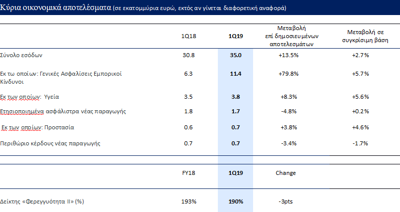 «Η απόδοση του πρώτου τριμήνου 2019 της ΑΧΑ ήταν για μία ακόμα φορά ισχυρή», δήλωσε ο Gérald Harlin, Αναπληρωτής Διευθύνων Σύμβουλος και Διευθυντής Οικονομικών Υπηρεσιών του Ομίλου ΑΧΑ. «Τα έσοδά μας παρουσίασαν αύξηση σε όλο τον Όμιλο, ιδιαιτέρως στους προτιμώμενους στρατηγικούς τομείς μας: την Υγεία, την Προστασία και τους Εμπορικούς Κινδύνους.» «H AXA XL είχε ένα δυνατό τρίμηνο στοχευμένης ανάπτυξης, με αύξηση στις Γενικές Ασφαλίσεις και τις Ασφαλίσεις Εξειδικευμένων Κινδύνων, ενώ διατήρησε την πολιτική της στην ανάληψη αντασφαλιστικών κινδύνων. Το περιβάλλον τιμολόγησης βελτιώθηκε περαιτέρω κατά τη διάρκεια του τριμήνου και οικοδομείται μία καλή δυναμική στους περισσότερους τομείς της ΑΧΑ XL.»