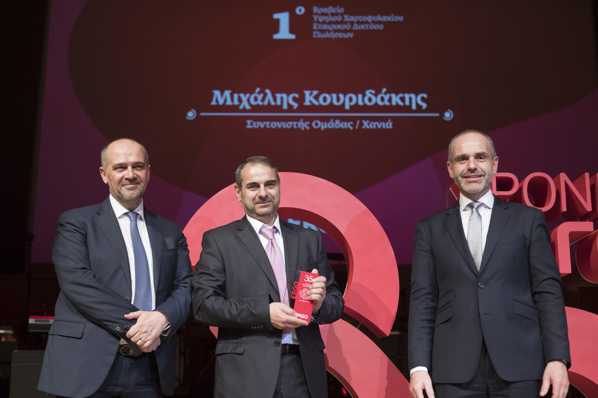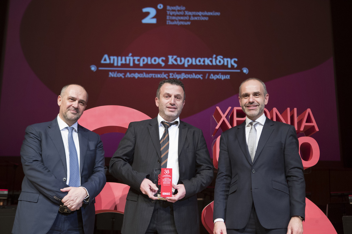 Τέλος, το πρώτο μέρος της εκδήλωσης ολοκληρώθηκε με τη βράβευση των κορυφαίων συνεργατών όλων των δικτύων πωλήσεων της ERGO, που διακρίθηκαν το περασμένο έτος για τις επιδόσεις τους, ενώ απονεμήθηκε και τιμητική διάκριση στην Τράπεζα Πειραιώς, για την ιδιαίτερα επιτυχή συνεργασία της.