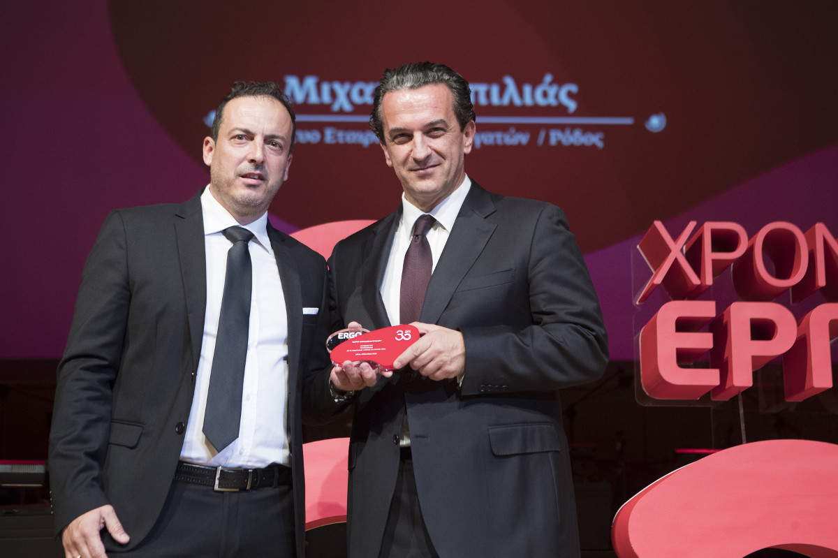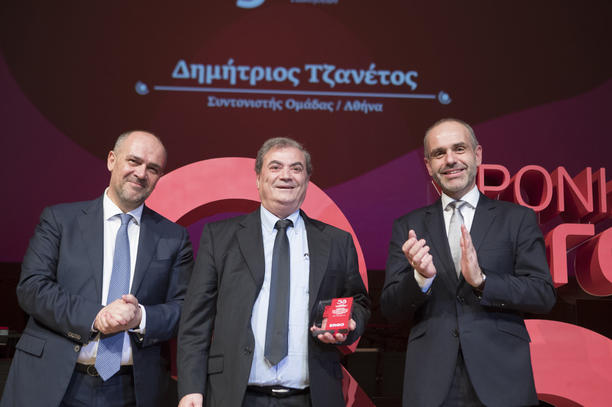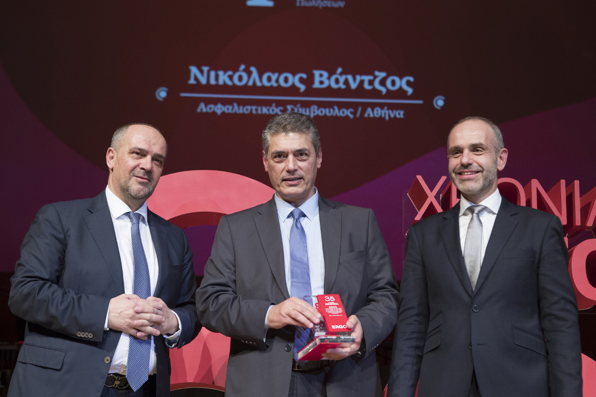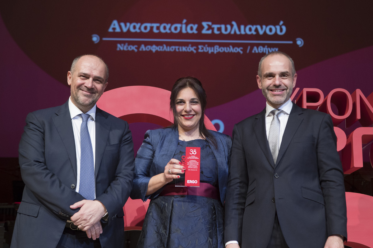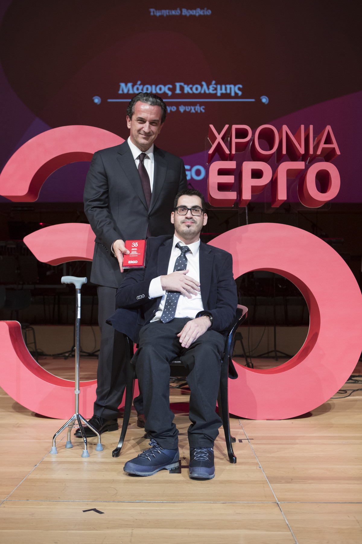Η εκδήλωση συνεχίστηκε με τη βράβευση των πρωταγωνιστών της σειράς των τηλεοπτικών επεισοδίων με τον τίτλο «Ένα Έργο, μια ιστορία», μιας πρωτοβουλίας της ERGO που κέρδισε τις εντυπώσεις στο χώρο της επικοινωνίας, άγγιξε τις καρδιές των τηλεθεατών και άλλαξε θεαματικά την αντίληψη του κοινού για το πώς μπορεί να σκέφτεται και να λειτουργεί μια ασφαλιστική εταιρεία. Η ERGO διά του κ. Κοκκάλα, ευχαρίστησε και τίμησε τους πρωταγωνιστές της σειράς αυτής για τη συγκίνηση και την έμπνευση που μας χάρισαν μέσα από το έργο τους, ενώ βράβευσε και τον Μάριο Γκολέμη, ασφαλιστικό διαμεσολαβητή και συνεργάτη της ERGO, έναν άνθρωπο με ξεχωριστό έργο, ένα Έργο Ψυχής, αφού αν και με κινητικά προβλήματα, είναι μέλος της ERGO Running Team και μετέχει τα τελευταία χρόνια μαζί με τους συνοδούς του στην κλασική διαδρομή του Μαραθώνιου δρόμου με σύνθημα «Μια Αστραπή η Ζωή, μα προλαβαίνουμε».