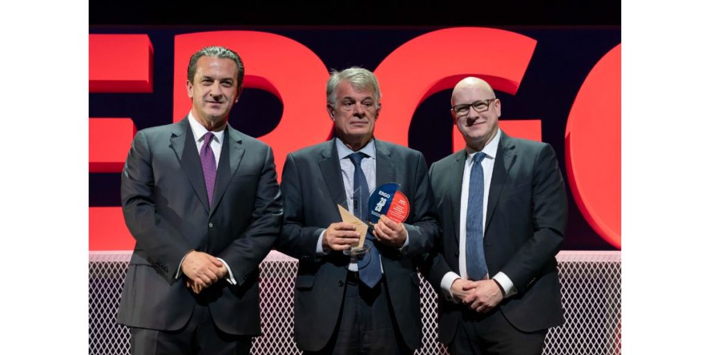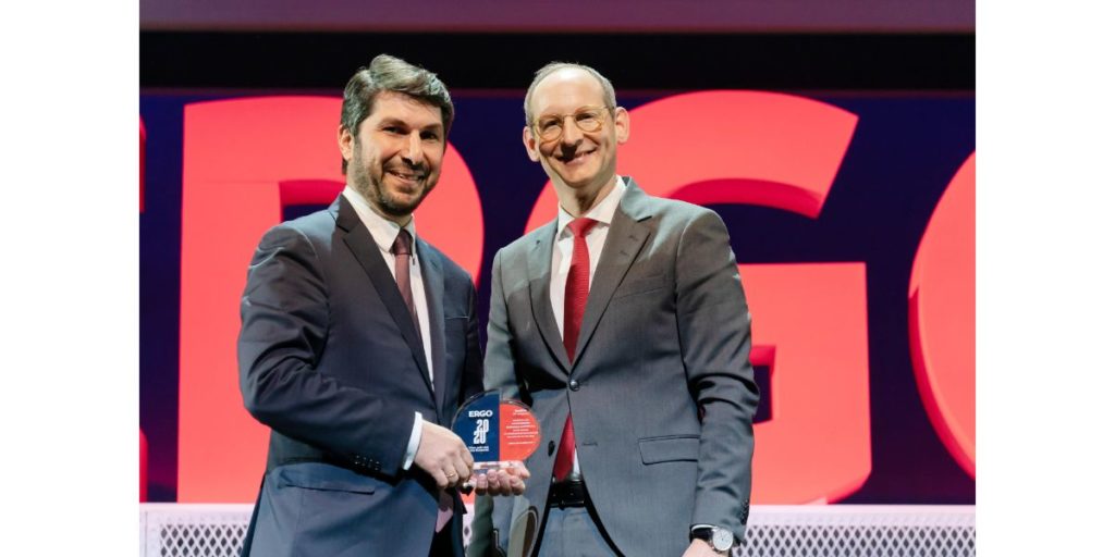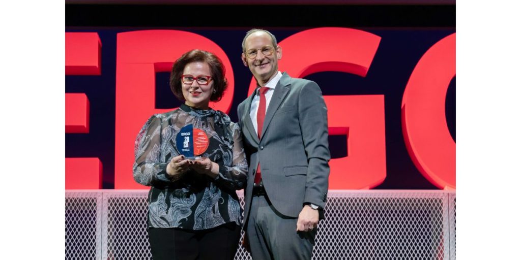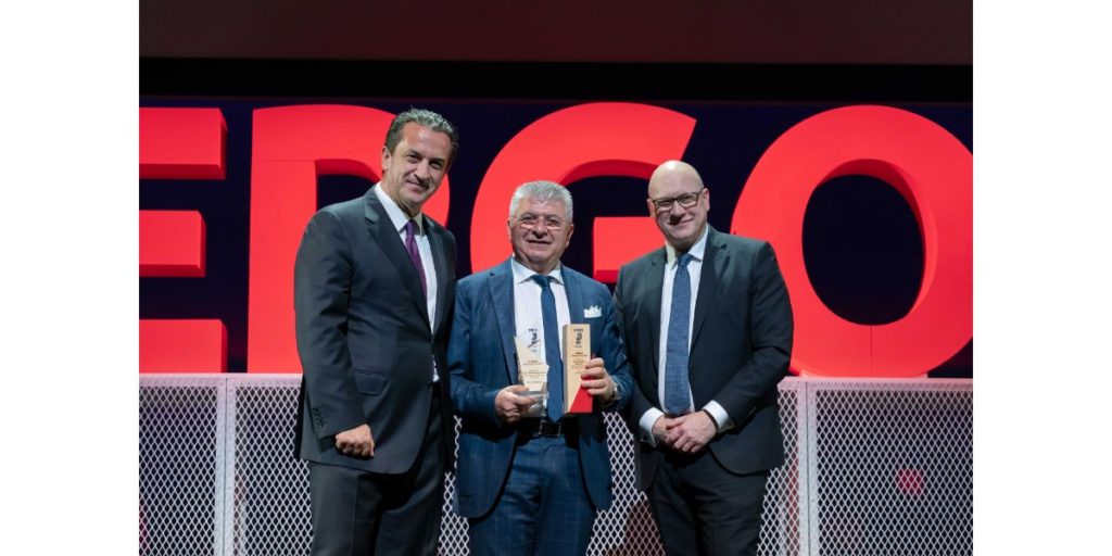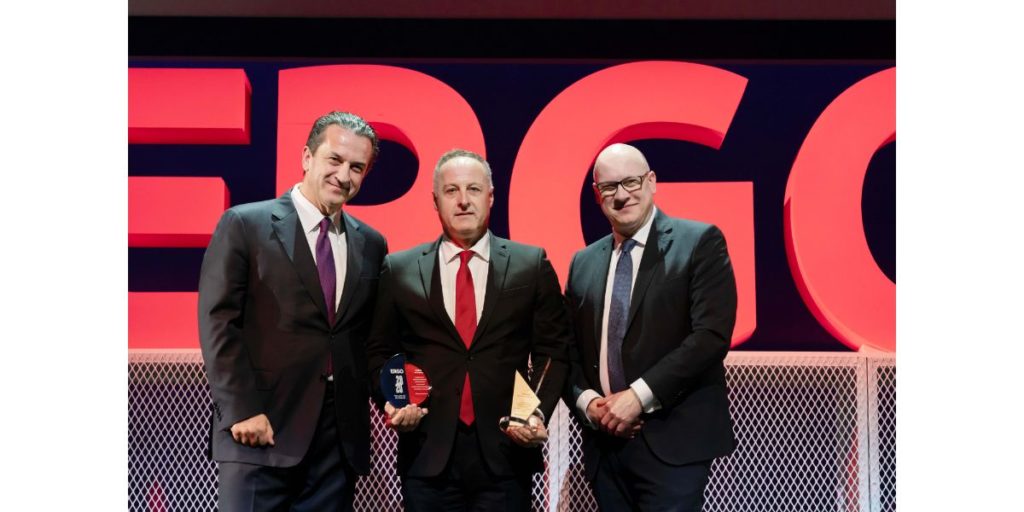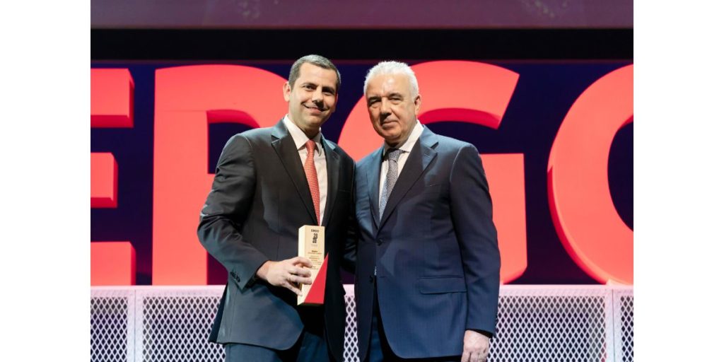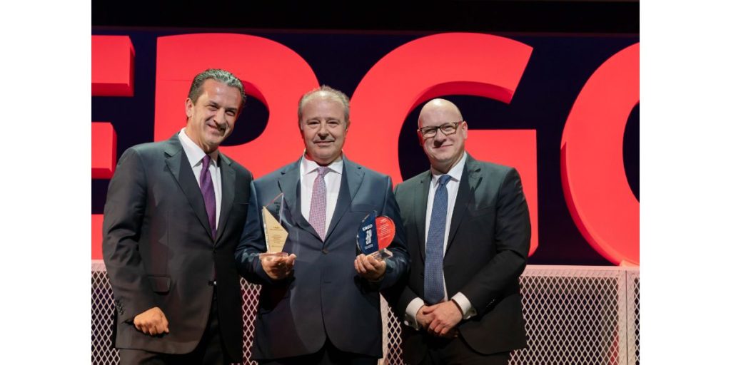 Ακολούθησε η βράβευση των κορυφαίων Συνεργατών της ERGO, που διακρίθηκαν για τις επιδόσεις τους στο έτος 2019 και η απονομή τιμητικής διάκρισης στην Τράπεζα Πειραιώς με αφορμή τη 10ετή ποιοτική και δημιουργική συνεργασία της με την ERGO.