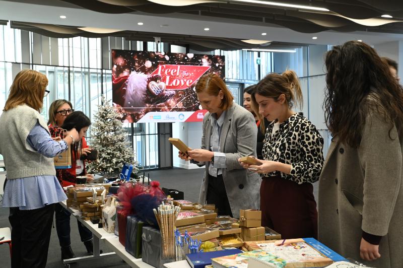 Η φετινή «διαδρομή» του Feel the Love! κορυφώθηκε με το εορταστικό Bazaar των τριών οργανισμών στα στολισμένα γραφεία της Generali, προσφέροντας στους ανθρώπους της Εταιρείας την ευκαιρία να στηρίξουν τους φορείς μέσω της αγοράς χειροποίητων προϊόντων. Ταυτόχρονα, καθ’ όλη τη διάρκεια των εορτών, οι εργαζόμενοι της Generali είχαν τη δυνατότητα να απολαύσουν τα παραδοσιακά κεράσματα που δημιούργησαν οι ωφελούμενοι από το Εργαστήρι Λίλιαν Βουδούρη, αλλά και τη Χριστουγεννιάτικη Σοκολάτα της Μέριμνας, ένα ακόμα μικρό σύμβολο αγάπης και αλληλεγγύης προς έναν οργανισμό με σπουδαίο έργο.