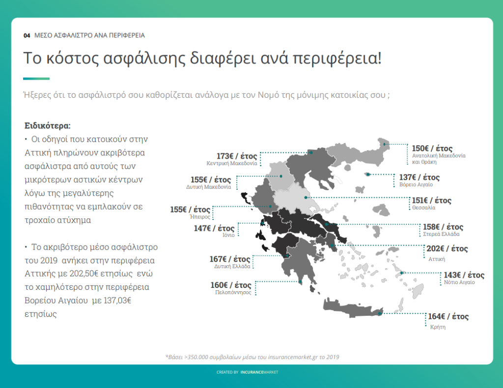 To μέσο ασφάλιστρο στο αυτοκίνητο ανήλθε σε 175,91 ευρώ και το μέσο ασφάλιστρο στη μηχανή στα 101,78 ευρώ. Όπως επισημαίνει η εταιρεία τα ασφάλιστρα από το 2016 μέχρι το 2018 είχαν πτωτική τάση λόγω έντονου ανταγωνισμού μεταξύ των ασφαλιστικών εταιρειών στην ασφάλιση των ανασφάλιστων έως οχημάτων ενώ τον τελευταίο χρόνο έχουν παραμείνει αρκετά σταθερά. Μία μικρή άνοδος του μέσου ετήσιου ασφαλίστρου οφείλεται κατά κύριο λόγο στην μείωση των εκπτώσεων ετήσιας διάρκειας.