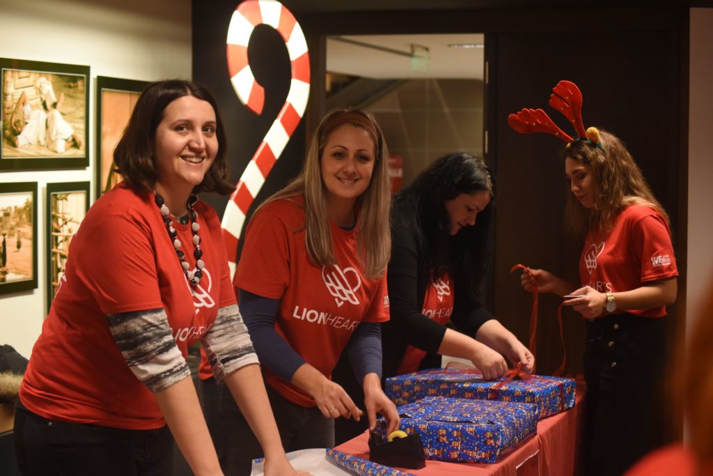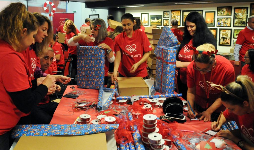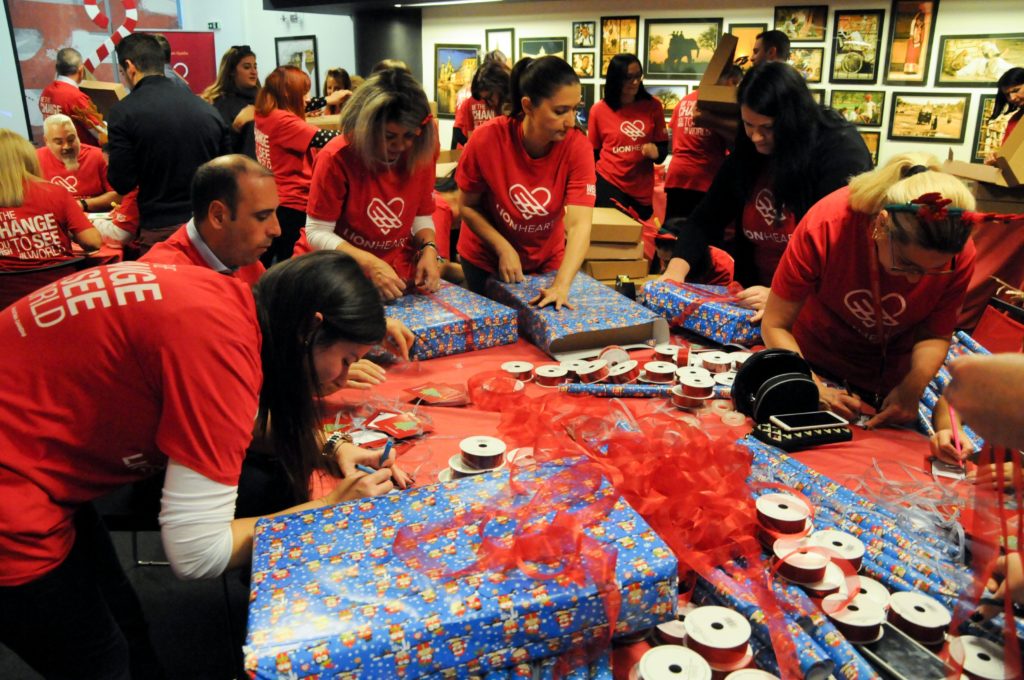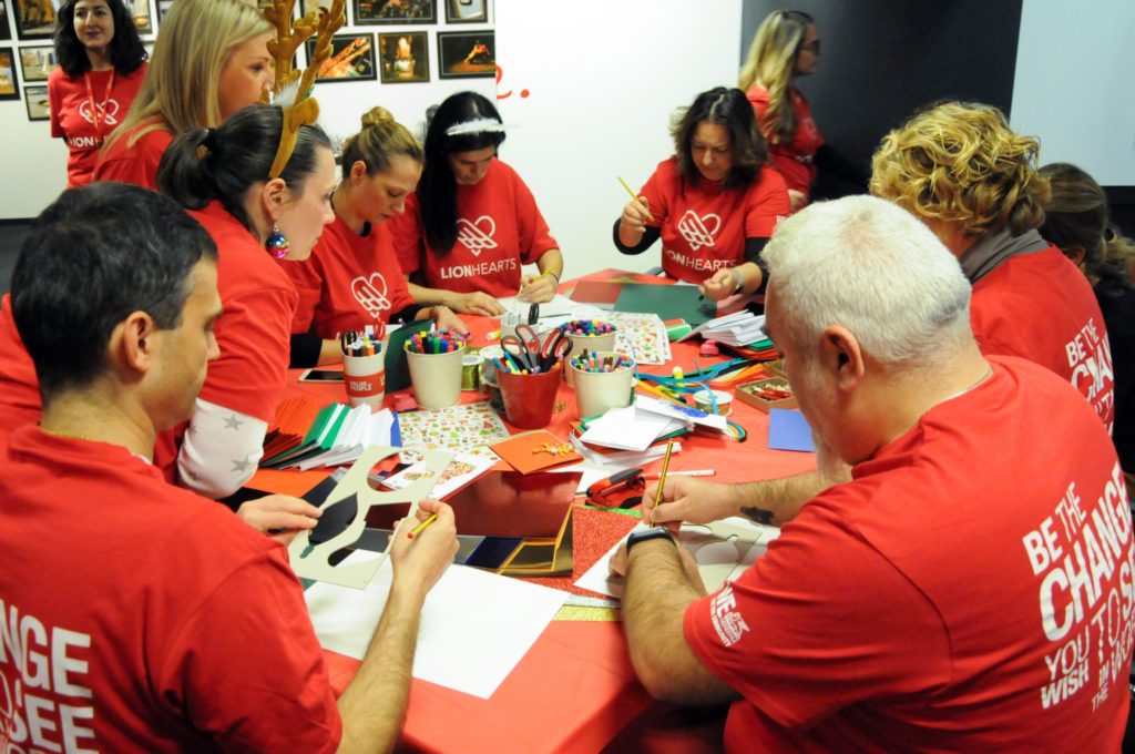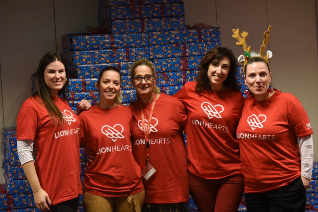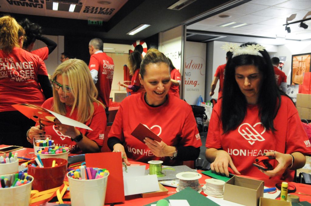 Συνολικά 230 δώρα κατάφεραν να περάσουν τον απαραίτητο… ποιοτικό έλεγχο των “υπεύθυνων παραγωγής” των LION HEARTS, ενώ τα τεχνικά τμήματα επιδόθηκαν στη συναρμολόγηση των συσκευασιών!Επιστρατεύοντας τις σχεδιαστικές και επικοινωνιακές τους δεξιότητες, εργαζόμενοι από τα Τμήματα Πωλήσεων, ΙΤ, Εξυπηρέτησης και Marketing ανέλαβαν τη δημιουργία χειροποίητων, προσωποποιημένων χριστουγεννιάτικων καρτών. Επίσης, καθώς οι καθημερινές ανάγκες σίτισης και φροντίδας των δύο οργανισμών είναι πολλές, οι εργαζόμενοι συνέλλεξαν πανελλαδικά φάρμακα, καθαριστικά, είδη πρώτης ανάγκης, παιχνίδια και δωροεπιταγές για τη αγορά φρέσκων τροφίμων. Συνολικά 46 κούτες με το αναγκαίο υλικό συσκευάστηκαν και παραδόθηκαν στους δύο φορείς, σε μία προσπάθεια έμπρακτης στήριξης του έργου τους. Η ομάδα των LION HEARTS, ετοίμασε ακόμη μία έκπληξη στα παιδιά του Εθνικού Νηπιοτροφείου Καλλιθέας αφού επισκέφθηκε τις εγκαταστάσεις του και στόλισε το χώρο φιλοξενίας, παραδίδοντας τα δώρα στα παιδιά που βρίσκονταν εκεί. Μαζί, τραγούδησαν τα κάλαντα και πέρασαν δημιουργικές στιγμές, παίζοντας με τα καινούργια τους παιχνίδια.