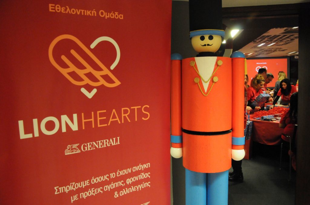 Κάνοντας πράξη το μήνυμα της εθελοντικής ομάδας LION HEARTS, που δεν είναι άλλο από το να αποτελεί μία ασπίδα προστασίας όσων το χρειάζονται, πάνω από 78εργαζόμενοι της εταιρείας από Αθήνα & Θεσσαλονίκη, έγιναν αυτά τα Χριστούγεννα ο Άγιος Βασίλης για τα 230 μικρά παιδιά που στηρίζουν το Πρότυπο Εθνικό Νηπιοτροφείο Καλλιθέας και το Abba House στη Θεσσαλονίκη. Στις 13 και 18 Δεκεμβρίου οι χώροι της Generali μεταμορφώθηκαν σε ένα μίνι εργοστάσιο παιχνιδιών με στόχο να ετοιμαστούν δώρα εκπαιδευτικού χαρακτήρα για τα παιδιά των δύο οργανισμών. Υποστηρικτές της εθελοντικής ομάδας LION HEARTS ήταν οι συντονιστές της ΜΚΟethelon, η οποία έχει πολυετήεμπειρίαστη δημιουργία συνεργειών μεταξύ εθελοντών, οργανισμών και εταιρειών, με σκοπό το θετικό κοινωνικό αντίκτυπο.