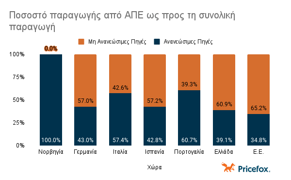 Η πρόσφατη έρευνα του Pricefox σχετικά με την παραγωγή ενέργειας το 2022 επιλεγμένων χωρών της Ε.Ε ρίχνει φως στην ενέργεια και παρουσιάζει πού βρίσκεται η Ελλάδα συγκριτικά με το μέσο όρο της Ε.Ε.
