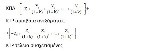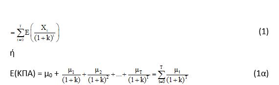 Η εξίσωση (3) δείχνει με τη βοήθεια των συντελεστών συσχέτισης rtt΄ το βαθμό συσχέτισης των καθαρών ταμειακών ροών του επενδυτικού έργου.
