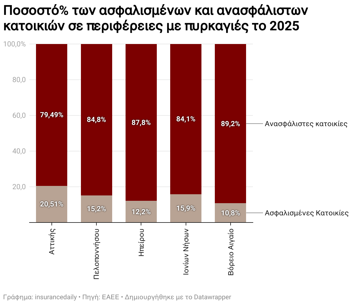 ΄Βλέποντας τα ποσοστά των ασφαλισμένων κατοικιών στις περιφέρειες που έχουν ζημιές σε σπίτια από φωτιές συνάγεται ότι τα ποσοστά των αποζημιώσεων που θα έρθουν από την ασφαλιστική αγορά θα είναι χαμηλά.