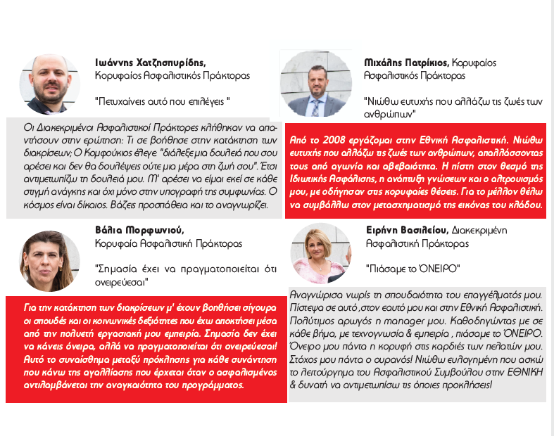 Η διαρκής υποστήριξη εκφράζεται με ασφαλιστικούς πράκτορες που βραβεύονται από την Εθνική Ασφαλιστική όντας μέλη της LIMRA, εκ των οποίων ήδη 5 ισόβια.